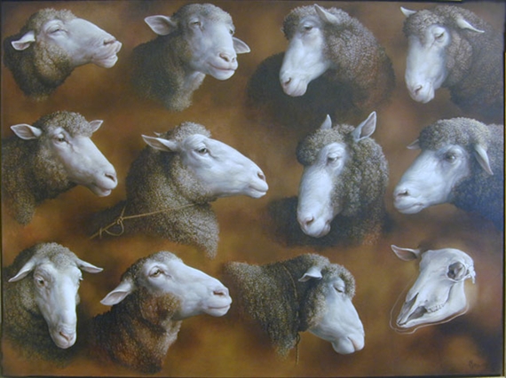 "En mi opinión, no hay mucha diferencia entre el crecimiento de un ser vivo y la pintura que, en términos de plan general de conciencia, el tiempo y el tiempo después. Ambas empresas siempre prevalecen sobre el plan porque la creatividad, la naturaleza, y el accidente existen, y tanto el tiempo de la demanda sin límites si el proyecto es desde el corazón. Después de un ser vivo se cultiva y después de un ser vivo está pintada, siempre existe la necesidad de volver a hacerlo un poco diferente, o un montón de otra manera, pero siempre para hacerlo de nuevo. Para mí, ver el crecimiento que hace la vida significativa. Yo nací en 1948 en Boston y comenzó a dibujar las cosas que viven en una edad joven. Nos trasladamos a Ohio, donde mi madre me llevó a museos de arte, y me hizo sentar con papel y lápices en el centro de las vastas salas blancas con cuadros en las paredes mientras ella iba de cuadro en cuadro. Nos mudamos a California en 1955, donde jugué en los estudios de escultura y pintura de Kenneth y Jackie Washburn en San Carlos, mientras que mi madre Kenneth asistido en el tallado de las puertas de la iglesia y otras comisiones. Jackie me dio las pinturas de caseína, cepillos y los paneles de chatarra y dejar que me siente en la parte posterior de las clases para adultos. Escuchar hablar de misterioso en los espacios negativos, fuentes de luz, los niveles de los ojos, y los viejos maestros , he pintado los corderos.