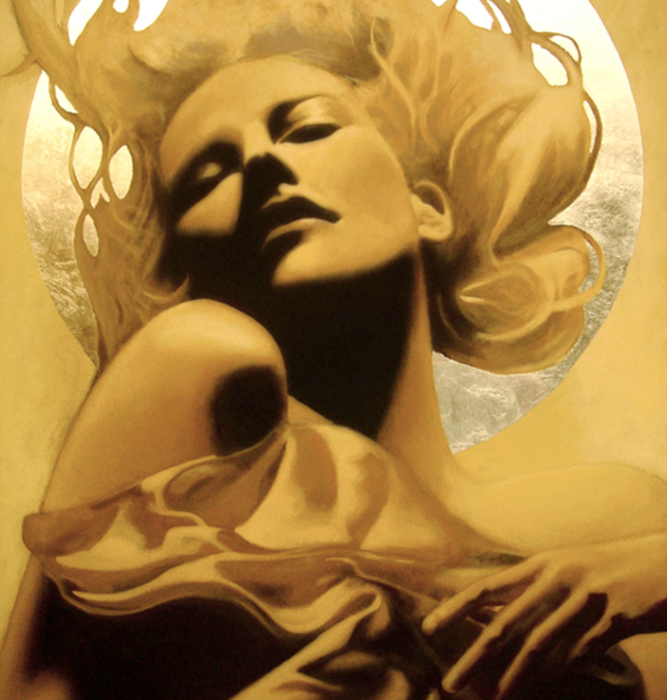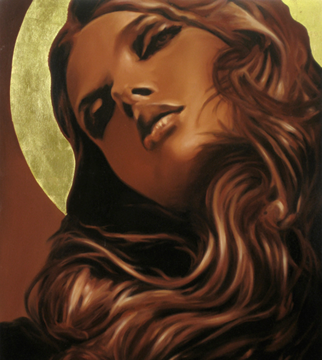Mi trabajo se basa principalmente en la iconografía religiosa, que a menudo trabajan con la idea de una 'belleza Santo'. Al mismo tiempo, desde mi formación en la ilustración y el diseño, estoy interesado en la forma de la belleza femenina es idealizado en los medios - sobre todo en los diseñadores de anuncios grandes de la moda.Estos intereses están reunidos en mi serie en curso The Guiding Light . Entonces, mi investigación sobre temas religiosos continuaron en la serie de eventos etéreos , que se refiere a la simbología religiosa del siglo 21. Estoy intrigado por la maravilla y el idealismo etéreo a mí respecta, la belleza que roza la divinidad, la mitología y misticismo.