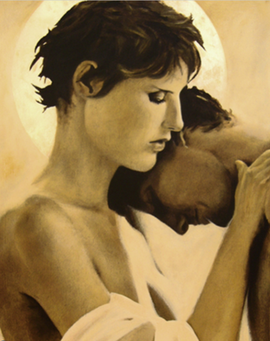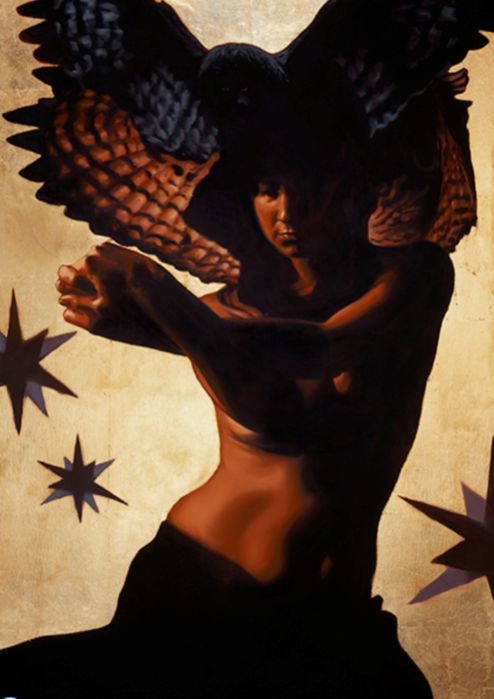 Mi trabajo toma prestado de la iconografía religiosa - que a menudo trabajan con la idea de belleza santa. Al mismo tiempo, a través de mi formación en la ilustración y el diseño, estoy interesado en las formas en que se ha idealizado la belleza femenina en los medios - especialmente en los anuncios de diseño de gama alta. Estos intereses se han reunido en mi serie en curso The Guiding Light. Mi investigación en materia religiosa ha seguido en la serie de manifestaciones etéreas , que considera que la simbología religiosa para el 21 º siglo. Estoy cautivado por asombro etéreo y estoy preocupado con el idealismo, la belleza frente a la divinidad, la mitología y misticismo.