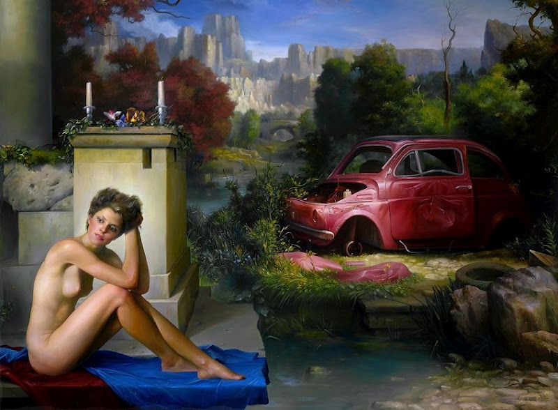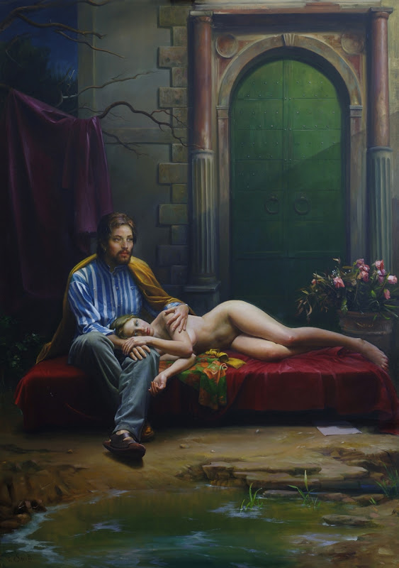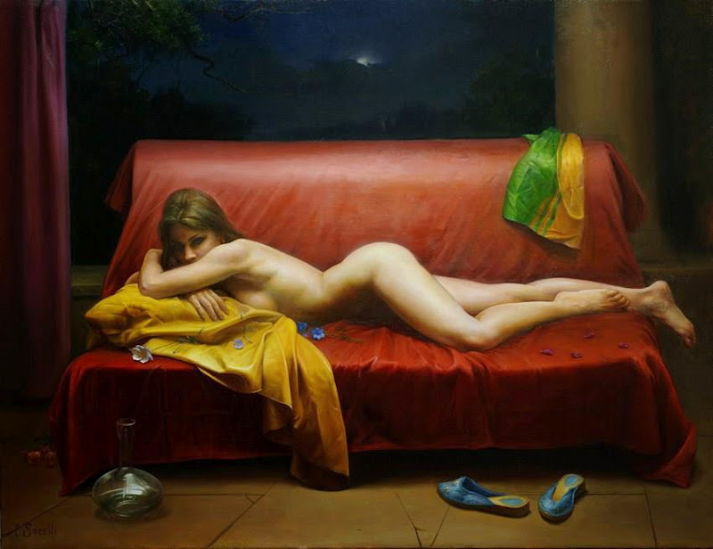 . Claudio Sacchi nació en Pesaro, Italia, el 19 de diciembre de 1953. Asistió a la Escuela de Arte de Urbino, y continuó sus estudios en la Academia de Bellas Artes de Florencia. Las principales influencias en su educación artística fueron sus encuentros con Pietro Annigoni en 1973 y con Enrico Del Bono en 1977, y su amistad con los dos artistas. Desde 1977 su obra ha sido incluida en el archivo del Kunsthistorisches Institut de Florencia, en la sección sobre el arte italiano del siglo XX. En 1979 colaboró con un centro de investigación que trabajan en las técnicas artísticas de Mario Donizetti, en Bérgamo. De 1980 a 1982 fue profesor de pintura en la Escuela de Arte de Spinelli y Restauración, Florencia. De 1989 a 1992 contribuyó con dibujos para la revista Firenze Ieri Oggi e Domani publicado por Newton Periodici. Desde su primera exposición individual en 1977 en Florencia, ha expuesto en las principales ciudades italianas (Roma, Milán, Bolonia, Génova, etc) y en el extranjero, en Amsterdam, Monte Carlo, Niza, Cannes y Gante. Numerosas pinturas y dibujos de Sacchi se han publicado en libros y revistas importantes. Su trabajo ha sido a menudo objeto de críticas favorables en la prensa italiana. Ha pasado largos períodos en Inglaterra y en los Países Bajos. En la actualidad vive en Florencia, donde es muy solicitado como retratista, y produce trabajo para varias galerías italianas. Su arte se basa en habilidades excelentes gráficos, siempre practicó y desarrolló de las glorias de la pintura renacentista. . LA CRITICA . "... Sacchi, pittore di formidabile virtuosismo tecnico, potrebbe sembrare subito ONU artista antico, invece intende semplicemente ribadire la legittimità e la dignità piena di un Modo di tarifa arte, quello legato alla tradizione, che la critica contemporanea por molto tempo ha voluto assurdamente rimuovere dalle nostre coscienze .... " - Vittorio Sgarbi - . "... C'è en lui, Potente ritrattista e acutissimo descrittore di un Reale che è al limite tra il verosimile e l'assurdo, Una forza di presenza della pittura en Sé che potenzia le capacità visive di chi si aplazar di fronte alle sue opere avvertendo Una sorta di stato di esaltazione mentale. Il suo stile è la migliore dimostrazione che nel campo della Figurazione si può essere vivi e vegeti senza indulgere en alcuna forma di stanca rievocazione o en ostentata citazione. E 'un pittore, Claudio Sacchi, che sa spiegare il senso del suo 'mestiere' aprendosi all'osservatore con la più grande sincerità ed intensità di espressione, libero da intellettualismi inútiles e da sensi di colpa per la propia bravura e competenza .... " - Claudio Strinati - . "... Pur apprezzando alcuni tra gli artisti contemporanei no era mi mai capitato di provare nei loro Confronti quel di senso autentica ammirazione che mi hanno suscitato le opere di Sacchi. E 'la prima volta che infatti mi trovo davanti ad un pittore dei nostri en possesso giorni di un talento naturale e di una tecnica paragonabili un quelli di Annigoni .... " - Benedetto Annigoni - . VALORACIONES . "... Sacchi, pintor de virtuosismo técnico formidable, podría parecer inmediatamente un viejo maestro, pero él simplemente desea hacer valer la legitimidad y la dignidad de pleno derecho de un modo de producción de arte - la forma tradicional - que la crítica contemporánea tiene para muchos años absurdamente trataron de borrar de nuestra conciencia .... " - Vittorio Sgarbi - . "... Hay en él una poderosa delineador retratista y más precisa de una realidad que está en la frontera de lo verosímil y lo absurdo, una fuerza de la presencia en la pintura misma que potencia las capacidades visuales de quien examina sus obras, produciendo una estado de exaltación mental. Su estilo es la mejor demostración de que en el ámbito de la representación figurativa se puede estar vivo y coleando sin caer en ningún tipo de destartalado re-evocación o cotización ostentosa. Claudio Sacchi es un pintor que sabe cómo explicar el sentido de su "oficio", abriéndose hacia el observador con la mayor sinceridad y la intensidad de la expresión, libre de intelectualismo inútil y de cualquier sentimiento de culpa acerca de sus propias habilidades y capacidades .... " - Claudio Strinati - . "... Aunque aprecio otros artistas contemporáneos, nunca me he sentido en su relación el sentimiento de auténtica admiración despierta en mí por las obras de Sacchi. Es la primera ocasión en la que me he encontrado en la presencia de un pintor de nuestros días que posea un talento natural y una técnica comparable a los de Annigoni .... " - Benedetto Annigoni - © Claudio Sacchi